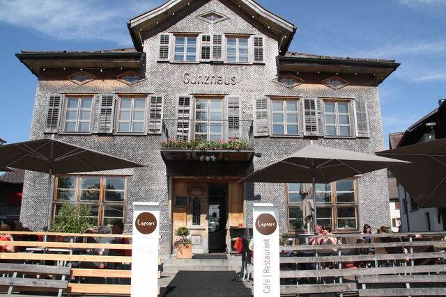Mit dem Caesars ist es ähnlich. Im gemütlichen Café im Erdgeschoss des Gunzhauses verwöhnen Brigitte und Cäsar Greussing. Das Ambiente ist modern und gemütlich: 45 Sitzplätze hat das Caesars – plus eine traumhaft sonnige Terrasse mit 50 Plätzen. Doch Achtung: Die Terrasse ist beliebt! Dass man hier, so direkt am Dorfplatz, wirklich erste Reihe fußfrei sitzt, ist längst kein Geheimnis mehr.